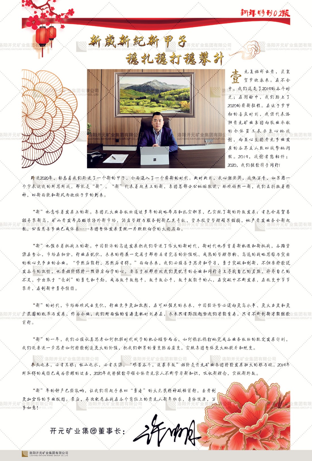 洛陽開元礦業(yè)集團有限公司簡介洛陽開元礦業(yè)集團有限公司,始成立于2006年,位于洛陽市開元大道269號。集團旗下共有五余家全資子公司,業(yè)務涉及有色金屬礦山開發(fā)、礦產(chǎn)品購銷與進出口貿(mào)易、房地產(chǎn)開發(fā)、文化藝術(shù)、企業(yè)管理與咨詢、資本投資等多個領(lǐng)域。民建河南省委委員、民建河南省委企業(yè)委副主任、民建洛陽市委委員、企業(yè)委主任、洛陽民建企業(yè)家協(xié)會會長許明月是公司創(chuàng)始人,現(xiàn)任洛陽開元礦業(yè)集團有限公司董事長。在礦業(yè)領(lǐng)域,洛陽開元礦業(yè)集團擁有多家實力雄厚的子公司:貴州開元礦業(yè)有限公司探、采礦權(quán)面積共11.33平方公里;興??h銅鑫礦業(yè)有限公司探礦權(quán)面積8.76平方公里,礦山資源潛力巨大;2021年,開元集團與盧氏中科礦業(yè)有限公司開展戰(zhàn)略合作。盧氏中科礦業(yè)有限公司專注于有色金屬的浮選、加工和銷售,擁有強大的技術(shù)支撐平臺,是集探、采、選、冶、研為一體的中大型綜合礦業(yè)企業(yè)。目前,盧氏中科王家河1000噸選礦廠已成功投產(chǎn),雙河金礦、柳關(guān)欒盧鉛鋅礦相繼順利開工,樓房銀礦與圪老灣鉛鋅礦的深部探礦重大突破,標志著礦山版圖取得重大進展,為開元集團后續(xù)發(fā)展奠定了堅實基礎。在文化傳媒領(lǐng)域,洛陽市明月美術(shù)館通過豐富多樣的藝術(shù)展覽、學術(shù)研討和公共教育活動,努力打造一個集展覽、交流、教育、研究為一體的綜合性藝術(shù)平臺。此外,在金融投資領(lǐng)域,開元集團旗下的北京明峰資本管理有限公司專注于投資具有高增長潛力的優(yōu)秀企業(yè),特別是高科技、新能源、環(huán)保等新興產(chǎn)業(yè),為客戶提供個性化的資產(chǎn)配置服務。在做好企業(yè)經(jīng)營的同時,開元集團始終不忘企業(yè)的社會責任和家國情懷,以突出的愛心公益事跡,開展了一系列公益慈善活動:“民建林”公益事業(yè)通過“思源基金”“幫幫公益”線上公益平臺,與眾多愛心人士籌措資金20余萬元;資助541名貧困大學生共計270余萬元,推進“數(shù)字助力——河南AI人才培養(yǎng)”;捐款10萬元,馳援京津冀、黑龍江洪水地質(zhì)災害……公司于2017年底被洛陽市慈善總會評為“洛陽慈善風云榜——十大愛心集體”。洛陽開元礦業(yè)集團有限公司秉承持續(xù)發(fā)展理念,憑借多年來良好的企業(yè)信譽與經(jīng)營業(yè)績,與全國多家企業(yè)建立了良好合作關(guān)系,受到社會各界的一致好評,多次榮獲“納稅標兵”“先進企業(yè)”“招商引資模范企業(yè)”等榮譽稱號?;赝麃頃r路,開元人勠力同心,以“闖”的精神和“創(chuàng)”的勁頭,一路披荊斬棘,踏過千山萬水;展望新未來,開元人凝心聚力,不執(zhí)于“舊”,無畏于“新”,秉承“勇于跨越,追求卓越”的企業(yè)精神,乘著國家高質(zhì)量發(fā)展新征程的東風,跨過高山,越過大海,向著集團多元化、國際化的目標,逐夢遠航,跨越前行!